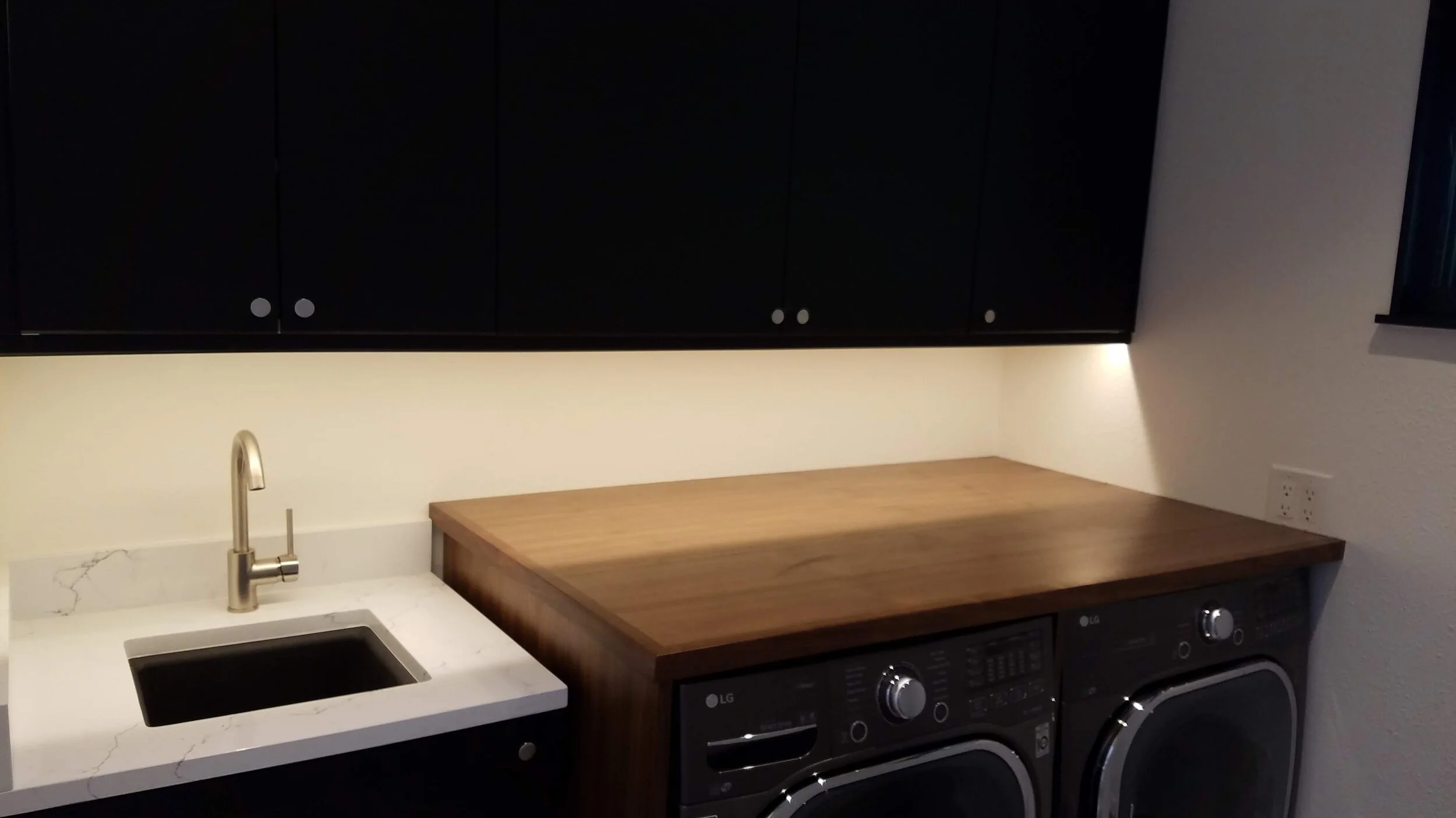 Custom gray shaker cabinets with quartz counter